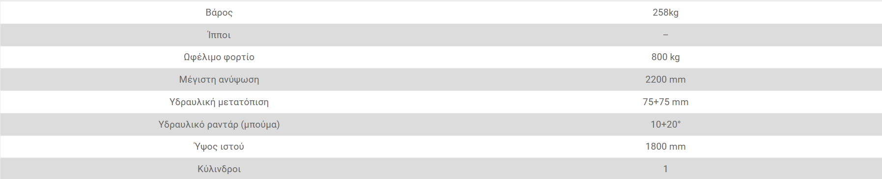 - Υδραυλική πλάγια μετατόπιση στον βασικό εξοπλισμό 75+75 mm