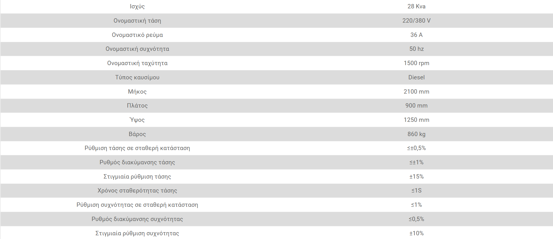 Στιβαρό πλαίσιο βάσης από ατσάλι με αντικραδασμικές βάσεις και δεξαμενή πετρελαίου ικανή για λειτουργεία 8-10 ωρών στο 75% της ισχύος.