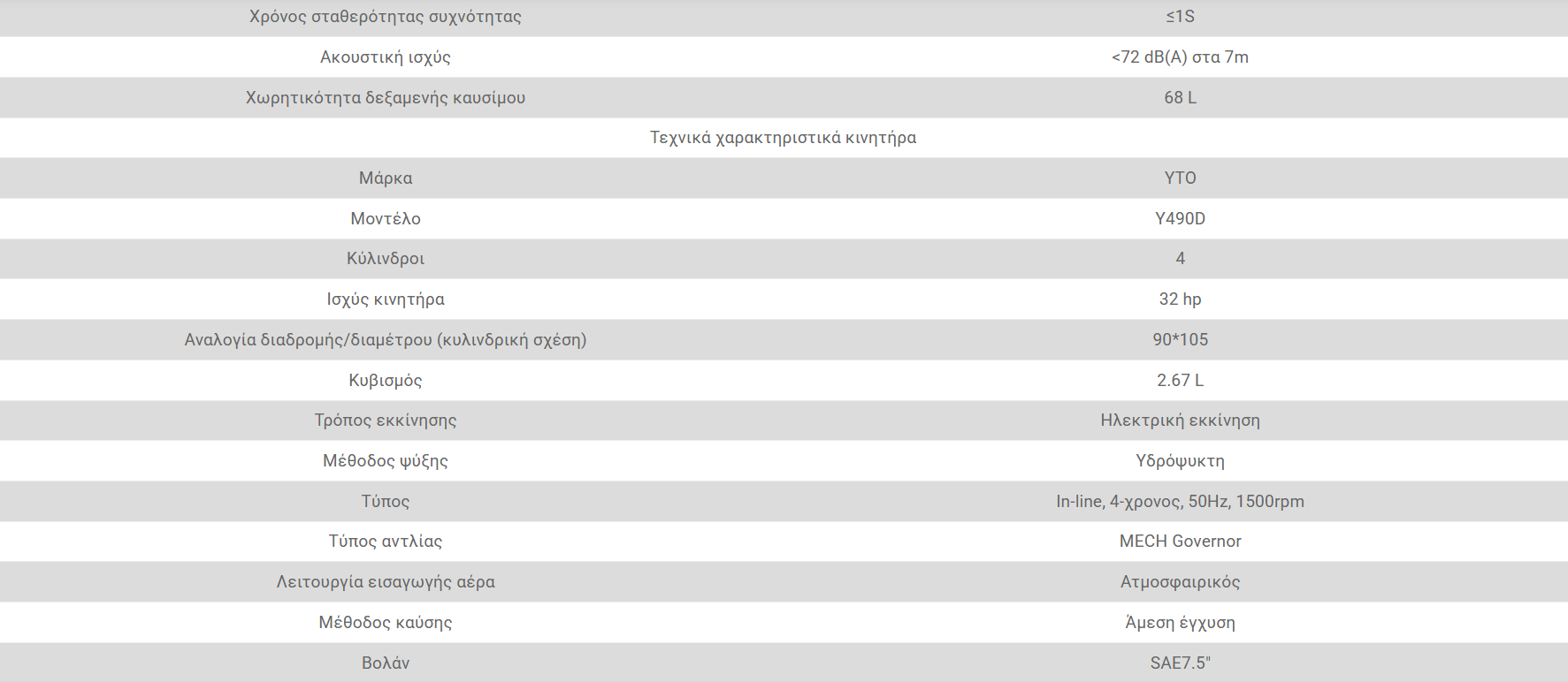 Βαρέως τύπου, υδρόψυκτος κινητήρας (πετρελαίου)Diesel και εναλλάκτης χωρίς ψήκτρες