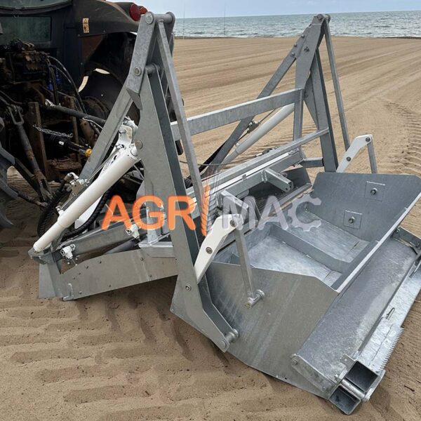 Μηχάνημα καθαρισμού παραλίας ρυμουλκούμενο με τρακτέρ, ιδανικό για χρήση με τρακτέρ 4 τροχών (50hp). Ιδανικό για καθαρισμό αμμωδών περιοχών (παραλίες, αποθήκες γηπέδων γκολφ, παιδικές χαρές, γήπεδα beach volley κ.λπ.) το σύστημα δόνησης, τα εναλλάξιμα κόσκινα με διάφορα πλέγματα σε σχήμα “σκαλοπάτι” και η δόνηση υψηλής συχνότητας επιτρέπουν το πλήρες κοσκίνισμα του η άμμος που φορτώνεται από τη λεπίδα, διαχωρίζει τα απόβλητα που θα πέσουν σε πρακτικό ατσάλινο δοχείο αδειάζεται υδραυλικά. Το βάθος της εργασίας ελέγχεται από τον χειριστή που ενεργεί στον υδραυλικό ανυψωτικό του τρακτέρ. Το μηχάνημα παρέχεται με 2 δυνατά κόσκινα με παλινδρομική κίνηση Το μηχάνημα είναι εξοπλισμένο με άξονα προπέλας με ελεγχόμενη δύναμη για τη σύνδεση με την απογείωση ισχύος του τρακτέρ. Το μηχάνημα συμμορφώνεται με τους κανονισμούς ce.
