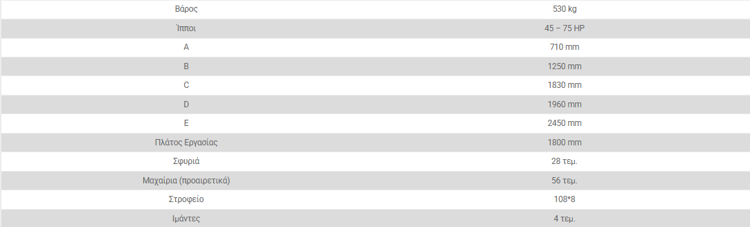 - Διεθνή ζεύξη τριών σημείων κατηγορίας Ι-ΙΙ (ø 25.0- 22.0mm/28.0mm).