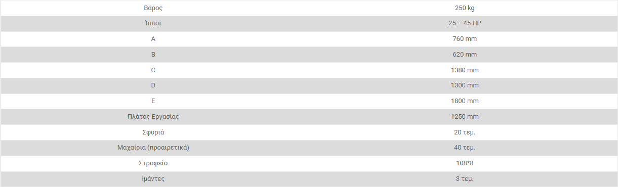 - Διεθνή ζεύξη τριών σημείων κατηγορίας Ι (ø 19.0-22.0mm ).