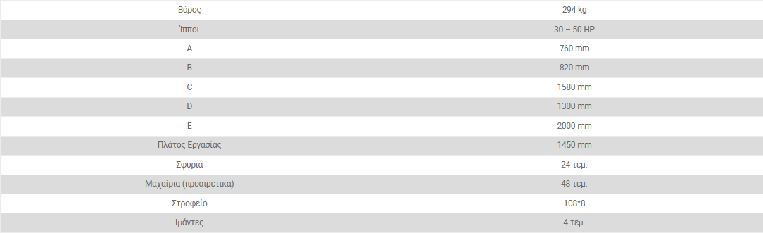 - Διεθνή ζεύξη τριών σημείων κατηγορίας Ι (ø 19.0-22.0mm ).