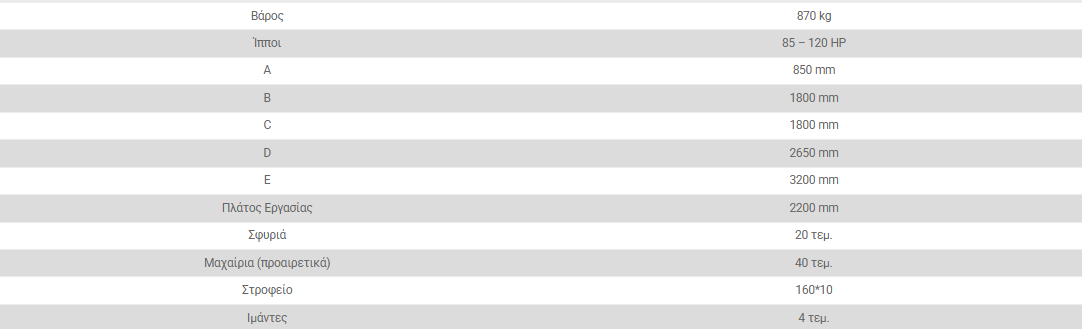 - Κιβώτιο μετάδοσης κίνησης με καστάνια 540r/min της ιταλικής εταιρίας “COMER”