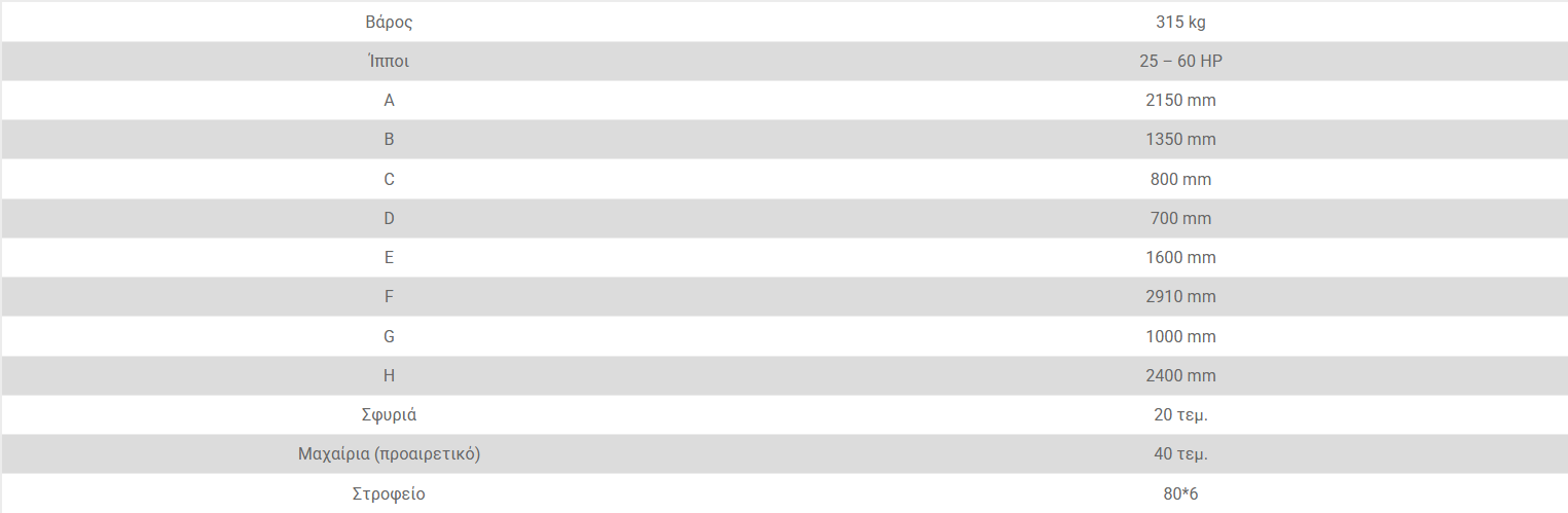 - Αυτόνομο υδραυλικό σύστημα, με υδραυλική αντλία που συνδέεται στο παρτικόφ.