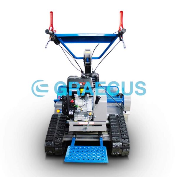 - Ερπύστριες και αναδιπλούμενο σκαλοπάτι για τη μεταφορά του χειριστή κατά τις εργασίες.