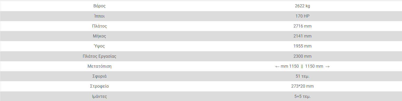 - Καινοτόμος κατασκευή ελικοειδούς στροφείου 273x20mm με ειδικής σκλήρυνσης σταθερά βίδια για άλεσμα έως 7εκ κάτω από το έδαφος.