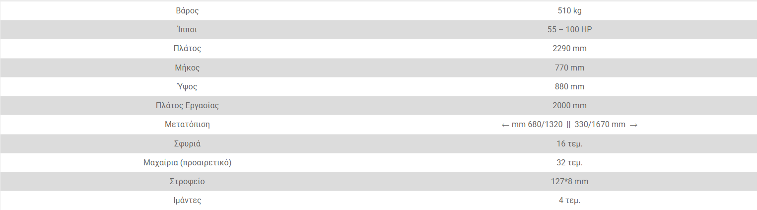 - Χαμηλό προφίλ για καθαρισμό κοντά στις ρίζες, χωρίς παρέκκλιση από τη πορεία του τρακτέρ και χωρίς κίνδυνο τραυματισμού των δενδρυλλίων.