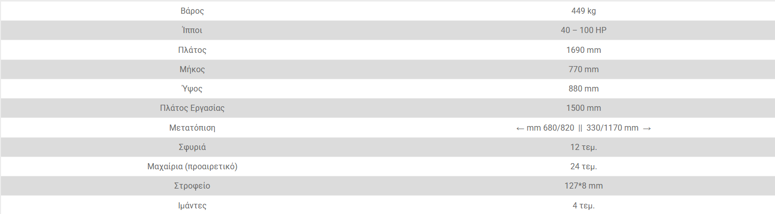 - Χαμηλό προφίλ για καθαρισμό κοντά στις ρίζες, χωρίς παρέκκλιση από τη πορεία του τρακτέρ και χωρίς κίνδυνο τραυματισμού των δενδρυλλίων.