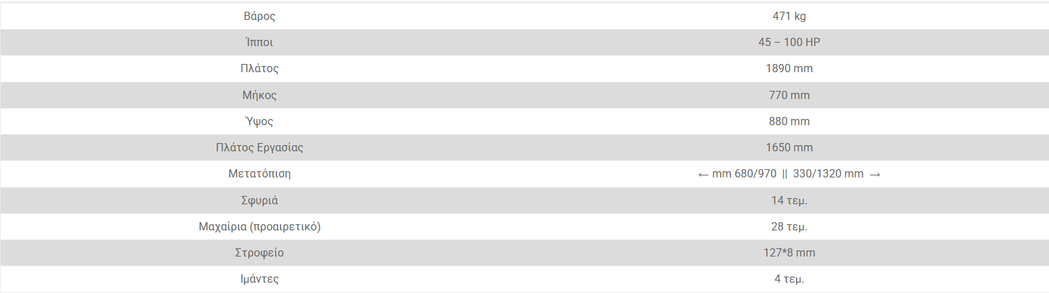 - Χαμηλό προφίλ για καθαρισμό κοντά στις ρίζες, χωρίς παρέκκλιση από τη πορεία του τρακτέρ και χωρίς κίνδυνο τραυματισμού των δενδρυλλίων.