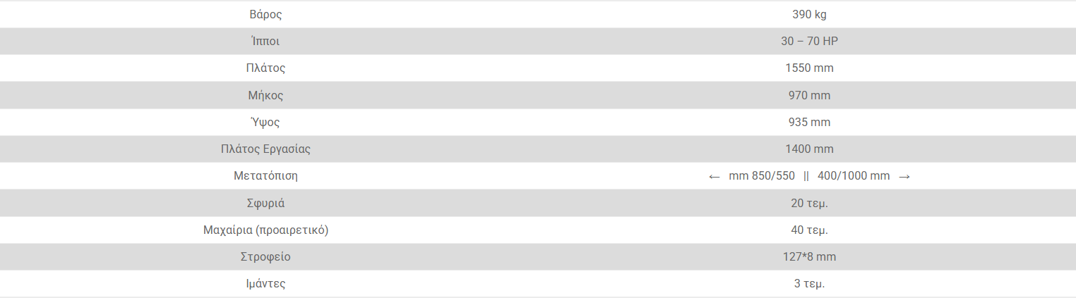 - Διεθνή ζεύξη τριών σημείων κατηγορίας Ι-ΙΙ (ø 19.0-22.0mm /28.0mm).