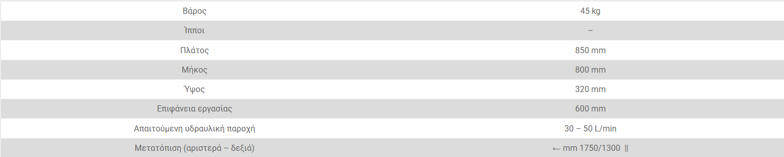 - Μέγιστη ταχύτητα εργασίας 5km/h.