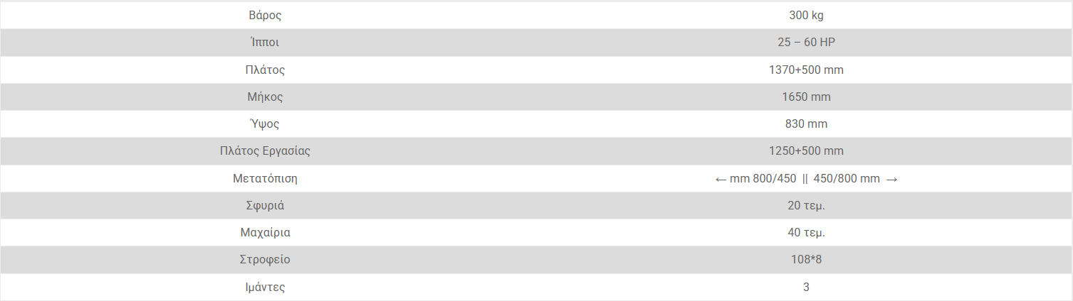 - Κιβώτιο μετάδοσης κίνησης (γκρουπ) 540r/min με ενισχυμένο κορονοπήνιο και καστάνια.