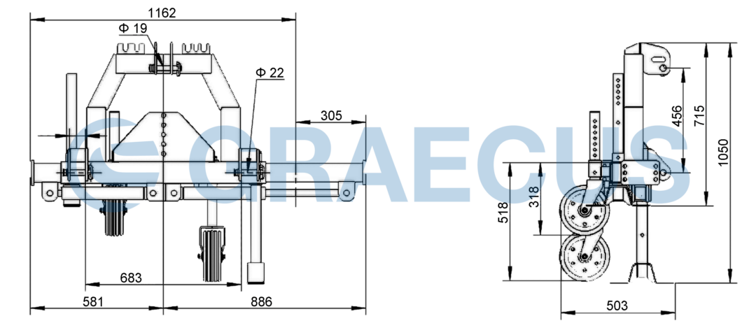 - Βάση με 2 υδραυλικά πτυσσόμενα μπράτσα.
