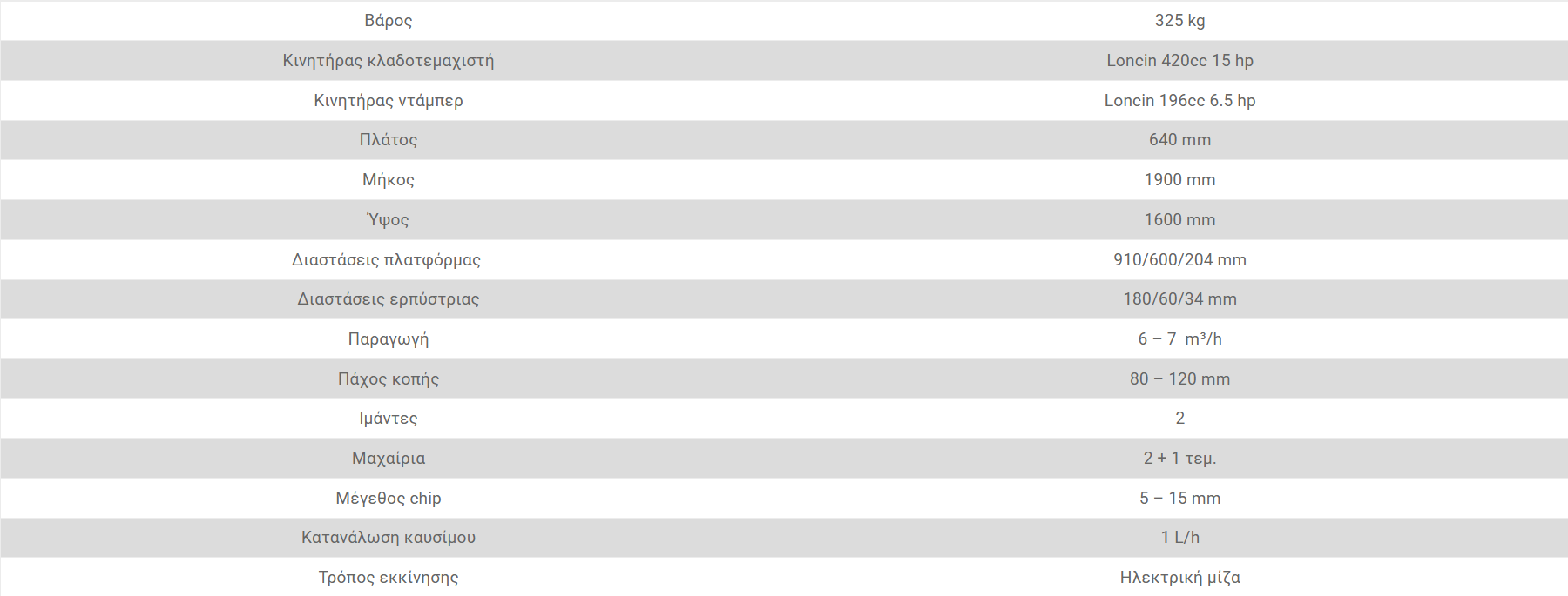 - Σύστημα κοπής τυμπάνου με 2 μαχαίρια διπλού προφίλ συν 1 σταθερό, υψηλής σκλήρυνσης για την ρύθμιση του πάχους κοπής.