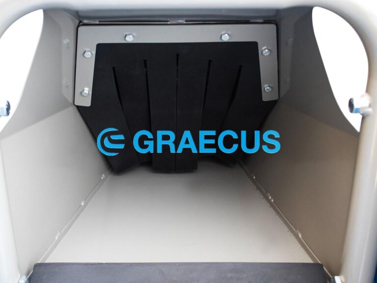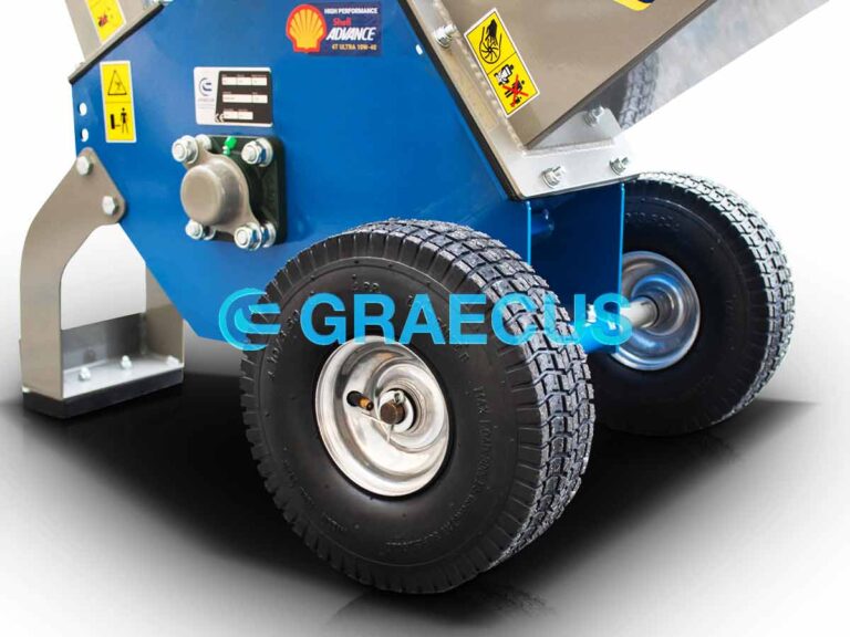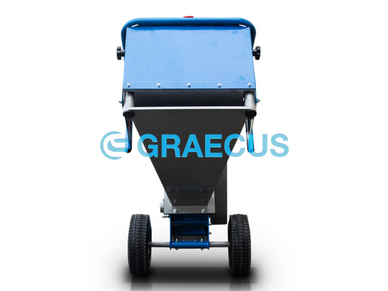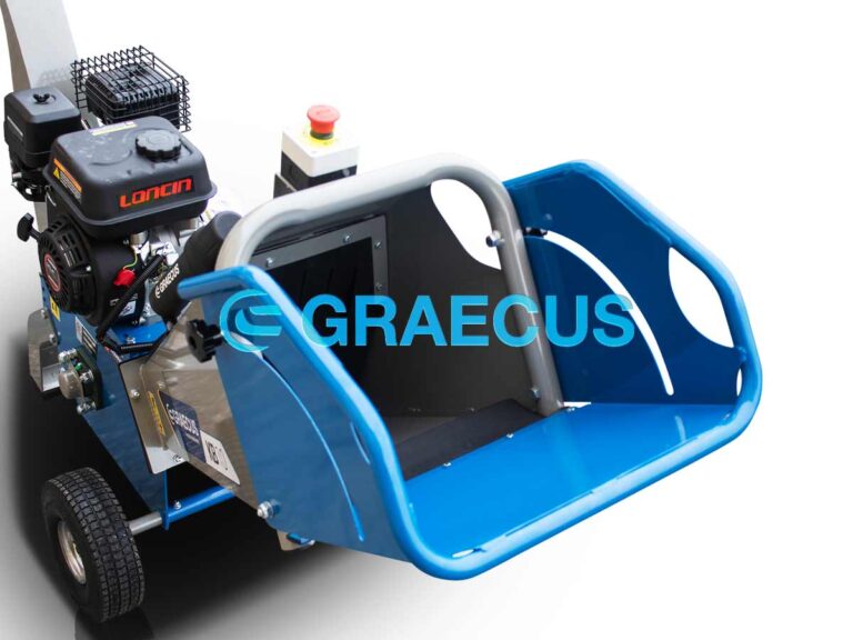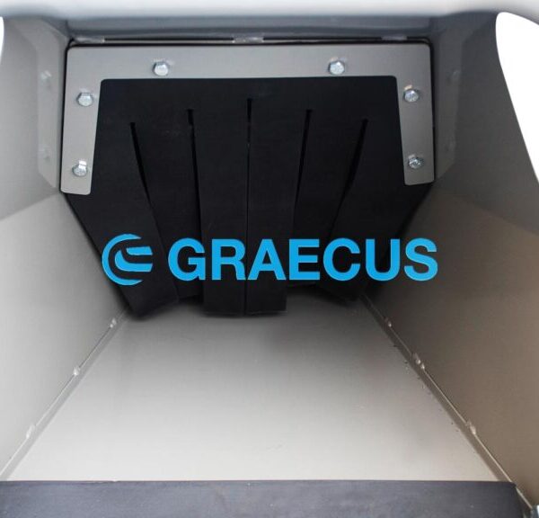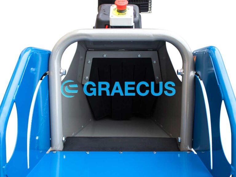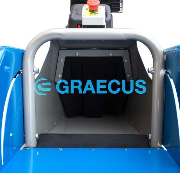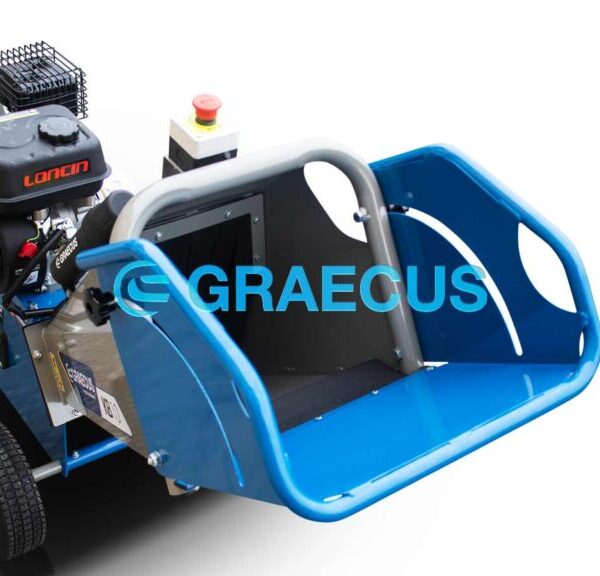 - Αναδιπλούμενη χοάνη για την προστασία και την μείωση του απαιτούμενου χώρου κατά την αποθήκευση και την μεταφορά του μηχανήματος.