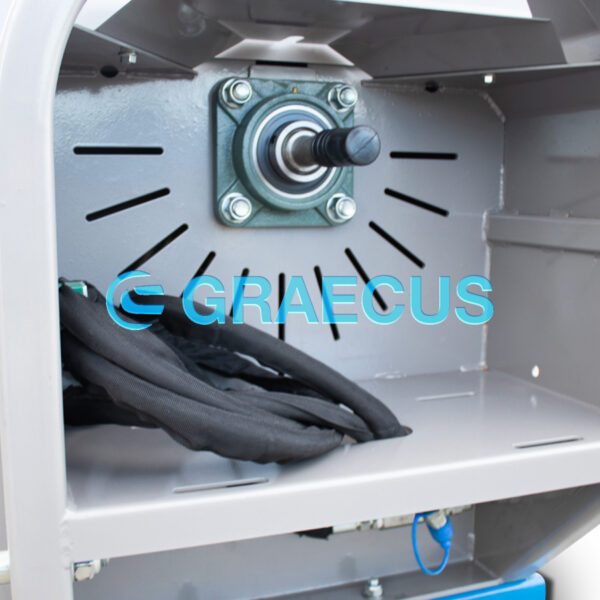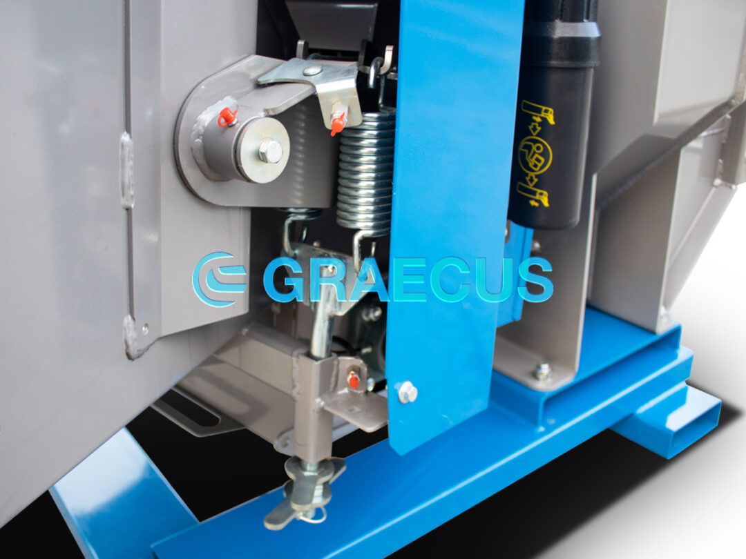 - Η χοάνη μπορεί να διπλωθεί προς τα επάνω μέρος για την μεταφορά και ασφαλίζει με πείρο.