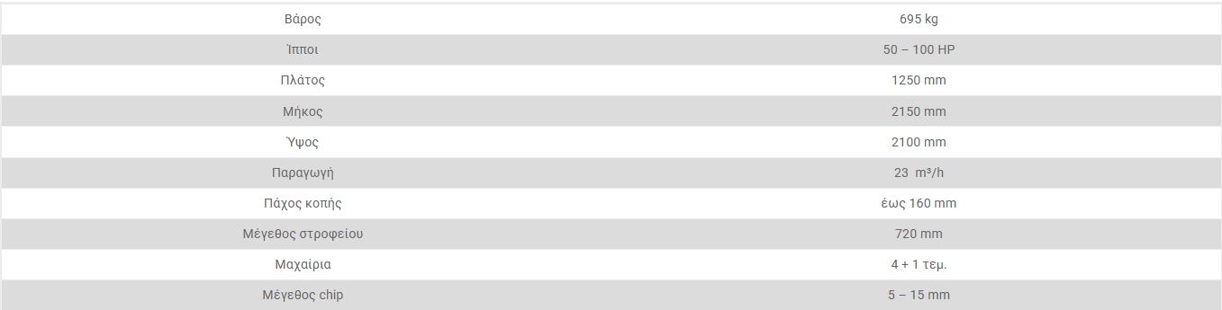 - Υψηλής σκλήρυνσης στροφείο( όχι χυτοσίδηρο) με 4 αναστρέψιμα μαχαίρια και 1 στο κάτω μέρος για τη ρύθμιση του πάχους κοπής..