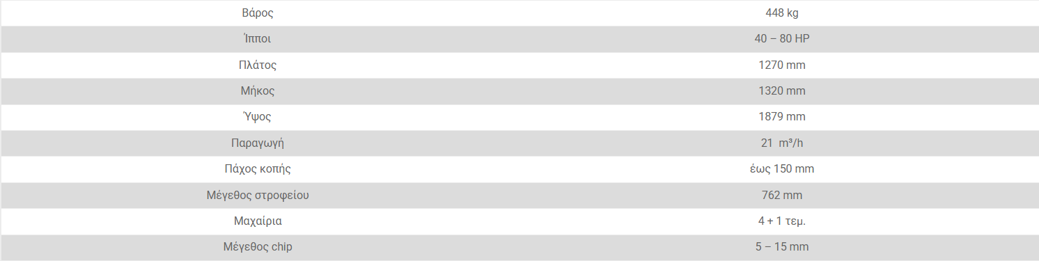- Υψηλής σκλήρυνσης στροφείο ( όχι χυτοσίδηρο) με 4 αναστρέψιμα μαχαίρια και 1 στο κάτω μέρος για τη ρύθμιση του πάχους κοπής.
