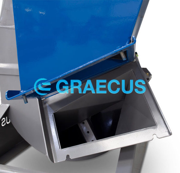 - Η χοάνη μπορεί να διπλωθεί προς τα επάνω μέρος για τη μεταφορά και ασφαλίζει με πείρο.