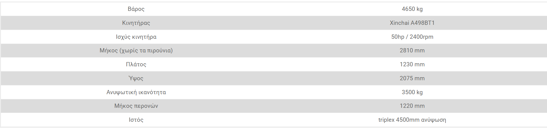 - Βασικός εξοπλισμός για χρήση σε κοντέινερ με ιστό 3 σταδίων ελεύθερης ανύψωσης 4500mm και πλάγια μετατόπιση.