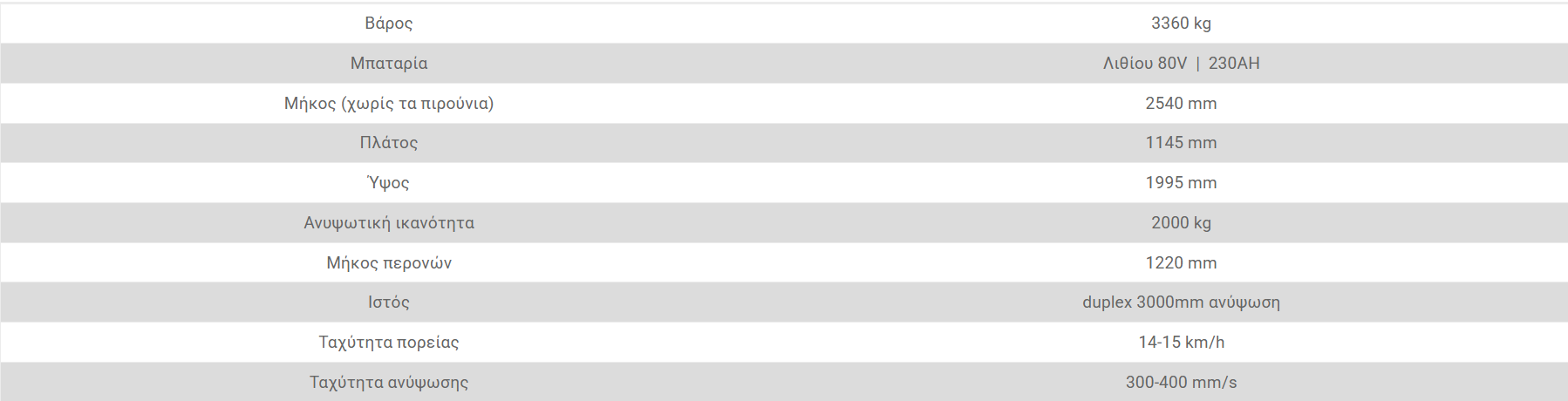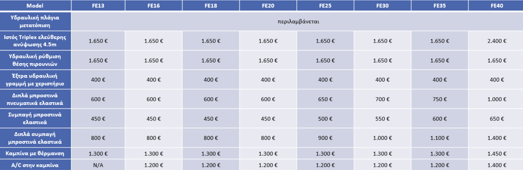 - Βασικός εξοπλισμός για χρήση σε κοντέινερ με ιστό 2 σταδίων ανύψωσης 3000mm και πλάγια