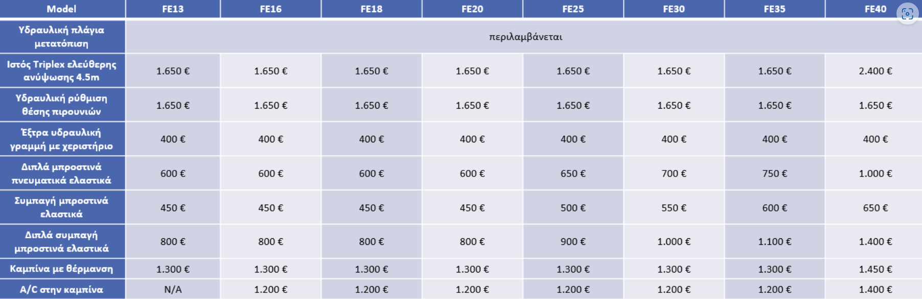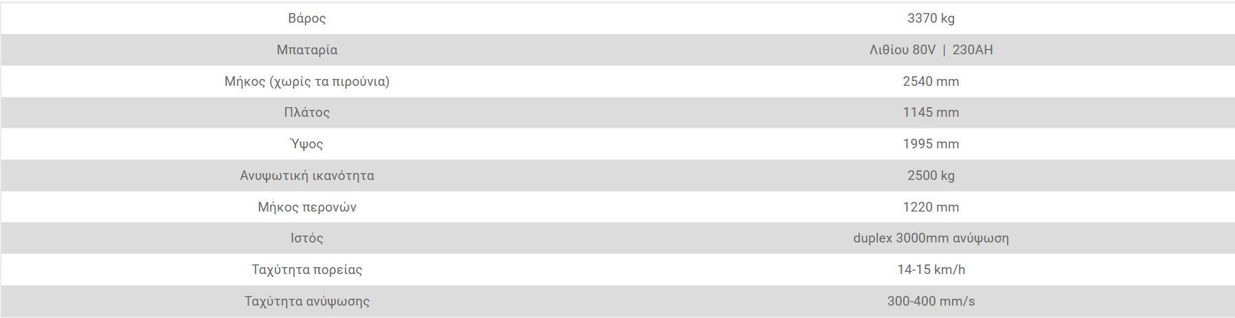 - Βασικός εξοπλισμός για χρήση σε κοντέινερ με ιστό 2 σταδίων ανύψωσης 3000mm και πλάγια