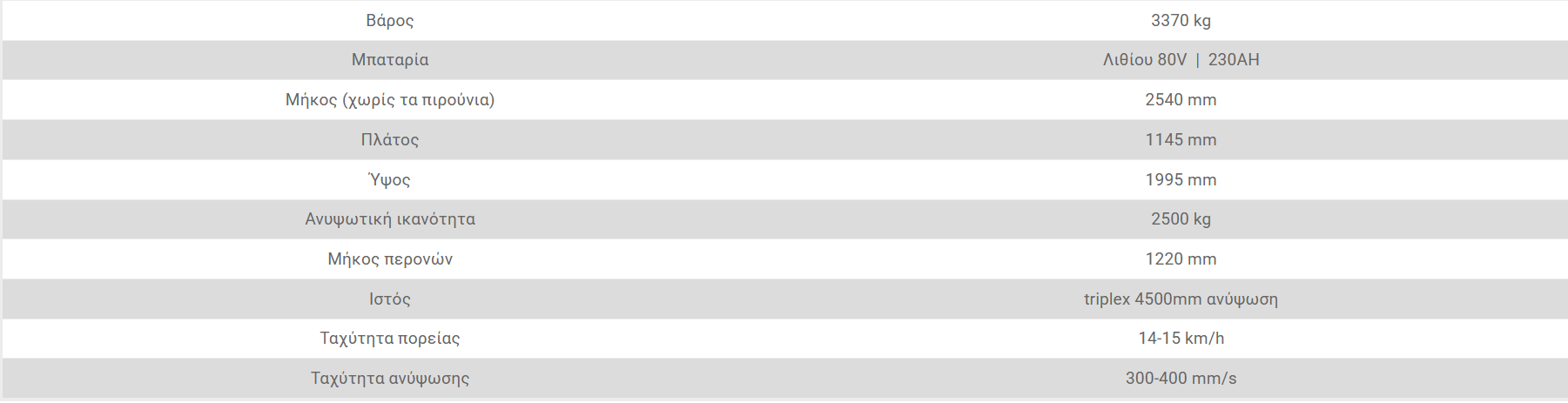 - Μπαταρία λιθίου 80V230Ah.