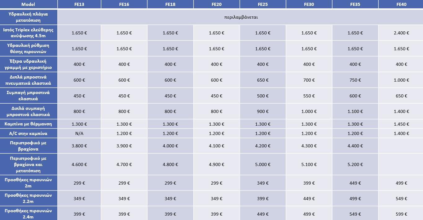- Βασικός εξοπλισμός για χρήση σε κοντέινερ με ιστό 3 σταδίων ανύψωσης 4500mm και πλάγια