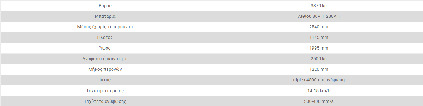 - Βασικός εξοπλισμός για χρήση σε κοντέινερ με ιστό 3 σταδίων ανύψωσης 4500mm και πλάγια