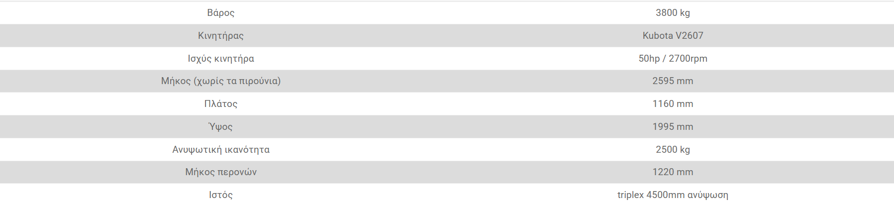 - Βασικός εξοπλισμός για χρήση σε κοντέινερ με ιστό 3 σταδίων ανύψωσης 4500mm και πλάγια μετατόπιση.