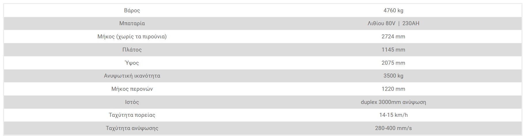 - Βασικός εξοπλισμός για χρήση σε κοντέινερ με ιστό 2 σταδίων ανύψωσης 3000mm και πλάγια