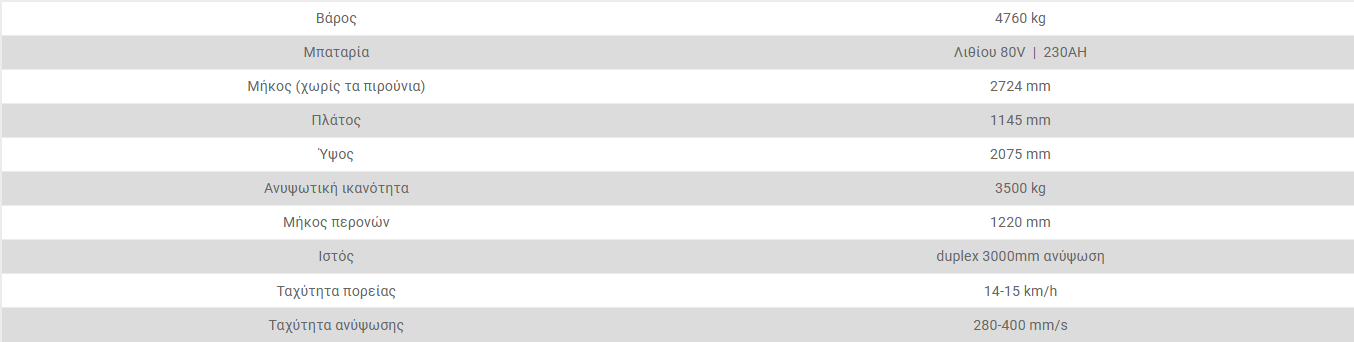 - Βασικός εξοπλισμός για χρήση σε κοντέινερ με ιστό 2 σταδίων ανύψωσης 3000mm και πλάγια