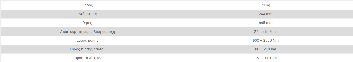 - Υδραυλική αρίδα που απότελείται από βαρέως τύπου υδραυλικό κινητήρα και ενισχυμένα γρανάζια( εισαγωγή λαδιού, εξαγωγή λαδιού).