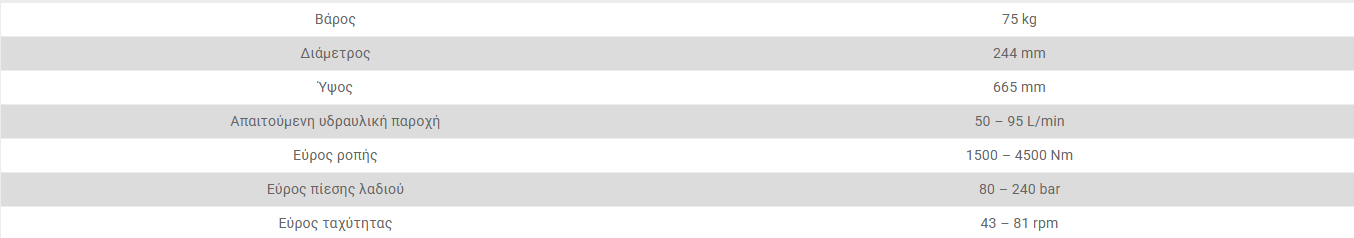 - Υδραυλική αρίδα που απότελείται από βαρέως τύπου υδραυλικό κινητήρα και ενισχυμένα γρανάζια( εισαγωγή λαδιού, εξαγωγή λαδιού).