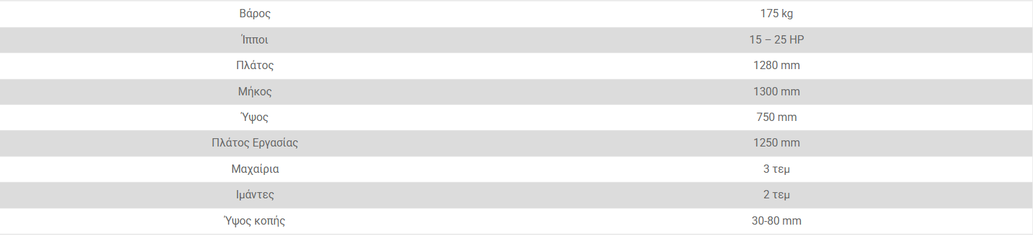 - Η ελαφριά δομή επιτρέπει τη χρήση του με τρακτέρ χαμηλής ισχύος, σε πεδιάδες ή σε πλαγιές.