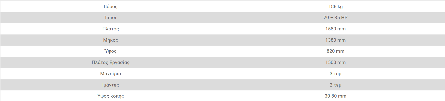 - Μαντεμένιο κιβώτιο μετάδοσης κίνησης (γκρουπ) 540rpm.