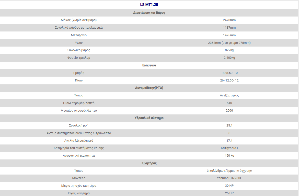 Η σειρά LS MT1 αποτελείται από μικρού μεγέθους τρακτέρ. Έχουν κομψό σχεδιασμό και βέλτιστές διαστάσεις.