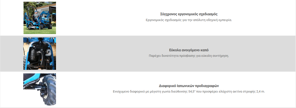 Είναι κατάλληλα για μικρές γεωργικές εκμεταλλεύσεις, καθώς και για τη συντήρηση χώρων.