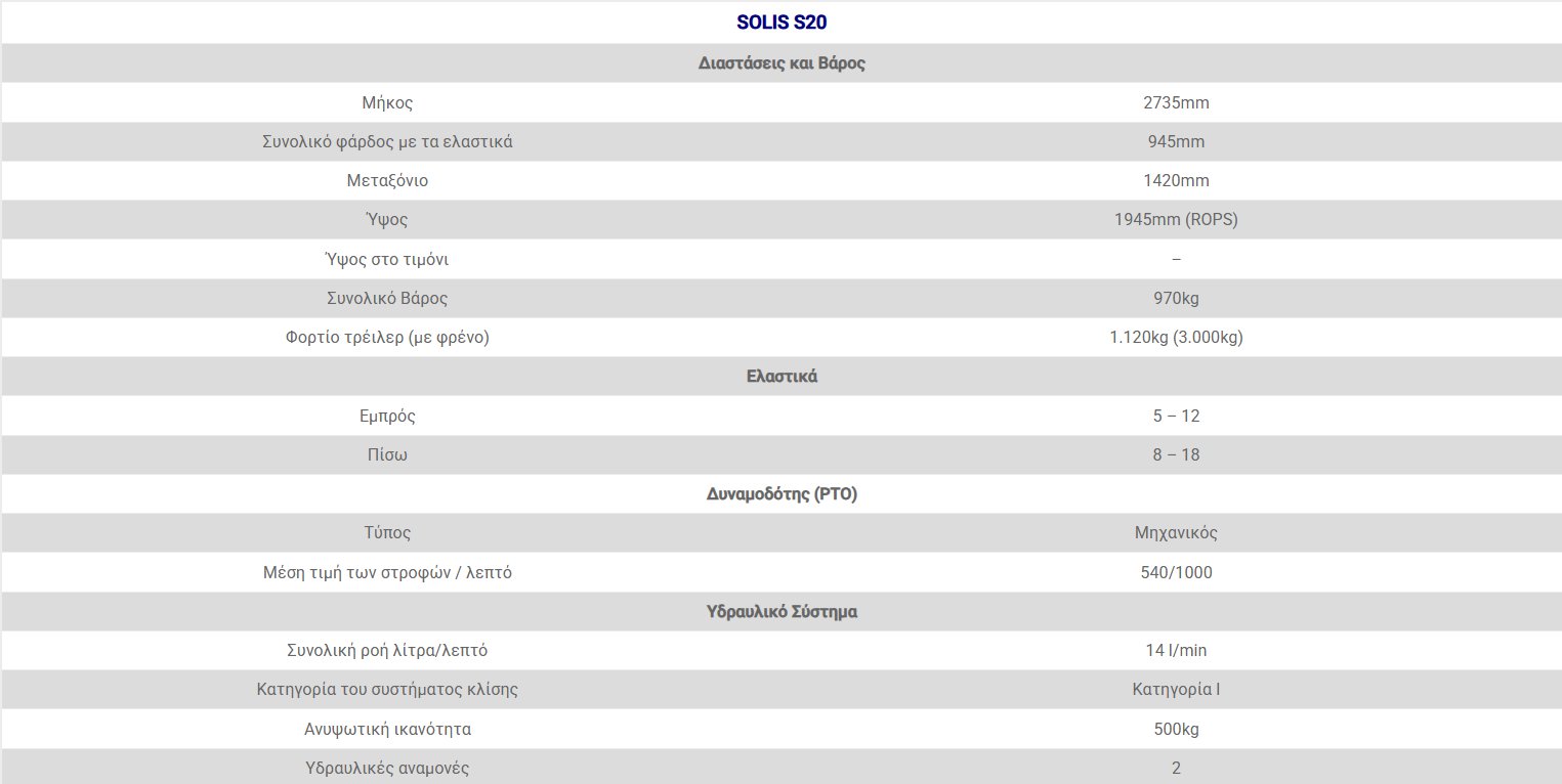 Υπο-συμπαγές, χαμηλού θορύβου και φιλικό προς το περιβάλλον, το SOLIS S20 είναι ένα αξιόπιστο τρακτέρ για κάθε εργασία. Με καλύτερη παραγωγικότητα, αυτό το καινοτόμο solis τρακτέρ είναι η καλύτερη αγορά για το χόμπι σας καθώς και για άλλες γεωργικές ανάγκες. Αυτό το συμπαγές τρακτέρ ξεπερνά κάθε όριο για να προσφέρει κορυφαία απόδοση. Με ικανότητα ανύψωσης 500 κιλών, καθίσταται το καλύτερο στην κατηγορία του. Πλήρως αεροδυναμική σχεδίαση, με εμπρός και πίσω προβολείς, το SOLIS S20 διευκολύνει την εργασία στο χωράφι με άριστο χειρισμό. Φθηνό δενδροκομικό Ινδικό τρακτέρ σε φανταστικές τιμές με παράδοση σε όλη την Ελλάδα.