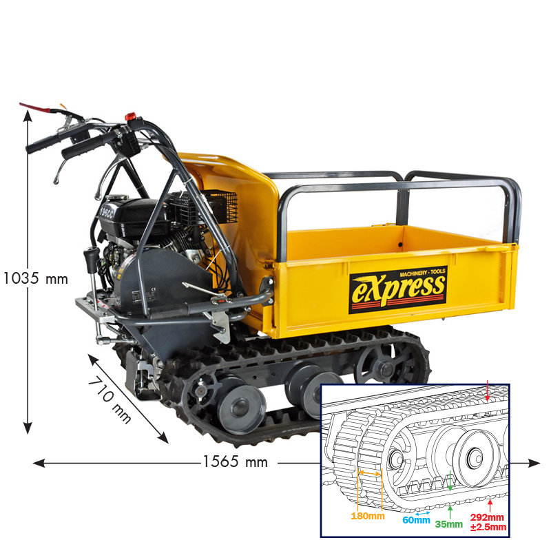 Ερπυστριοφόρο Βενζινοκίνητο Καρότσι 6.5HP, με Ικανότητα Μεταφοράς Φορτίου 300kg, με 3 Ταχύτητες Εμπρόσθιας Κίνησης και 1 Ταχύτητα Όπισθεν, Ανατρεπόμενη Καρότσα με Υποβοήθηση (ΑΜΟΡΤΙΣΕΡ) & Βάθος Κάδου 204/470 mm με Προεκτάσεις