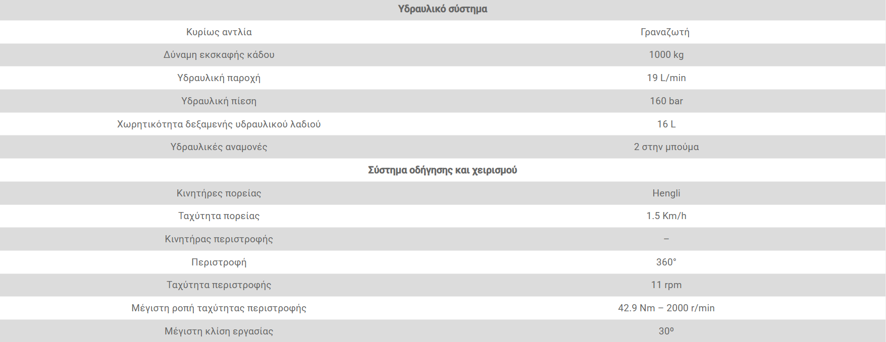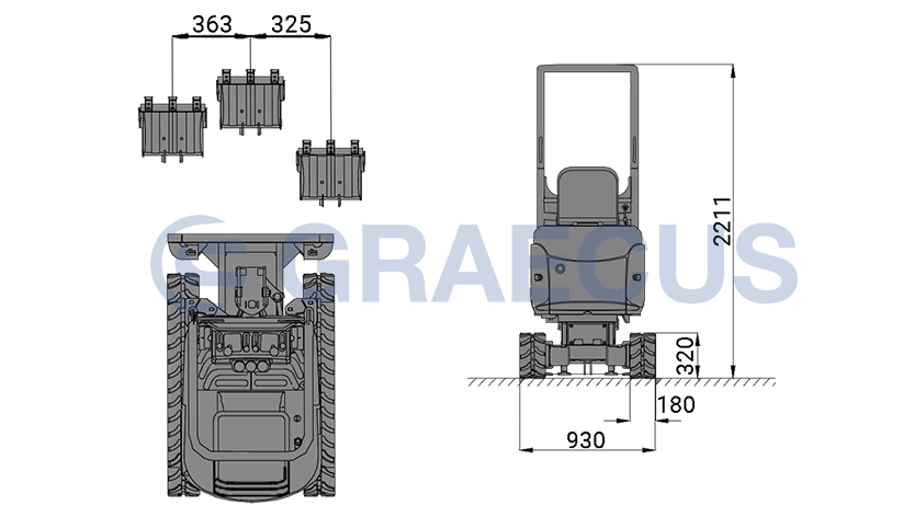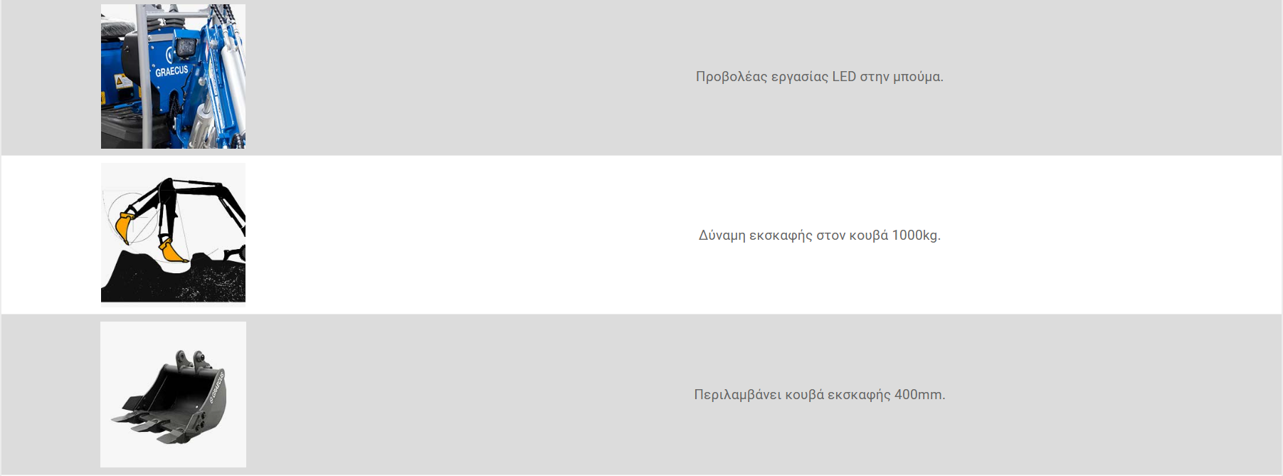 - 1x κουβά εκσκαφέα με πλάτος εργασίας 400mm