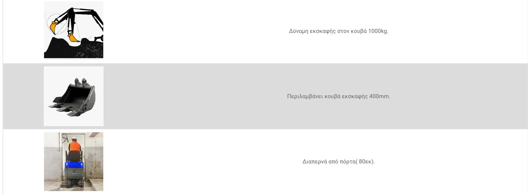 - 1x μικρός ερπυστριοφόρος εκσκαφέας EB10-XL