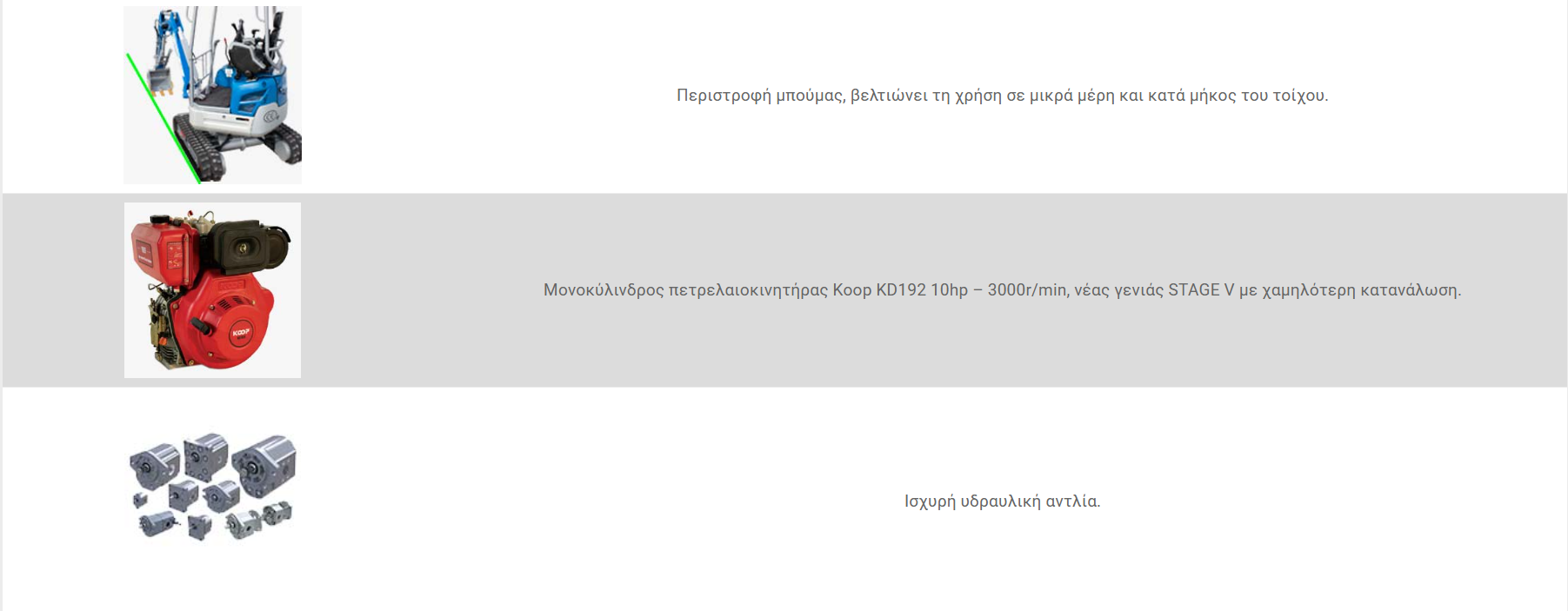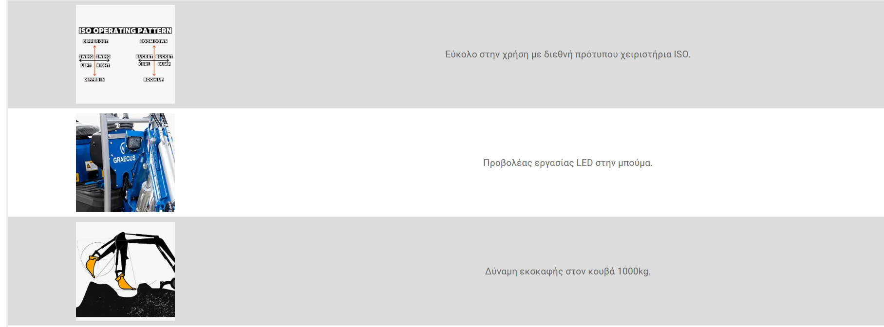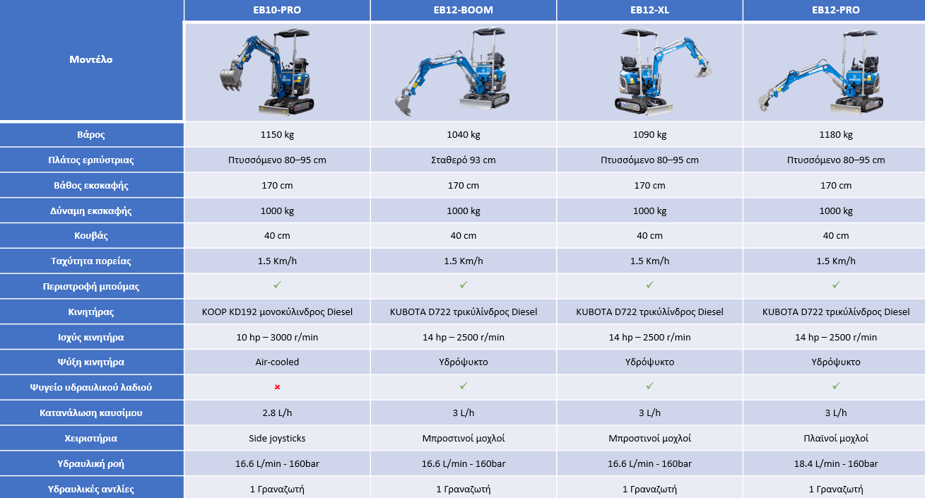 Σύγκριση σχετικών εκσκαφέων
