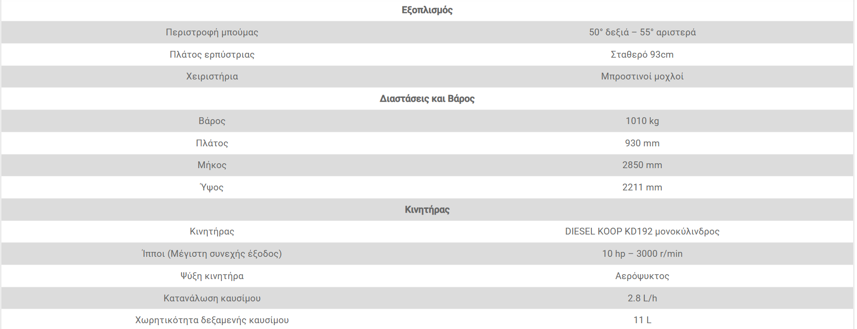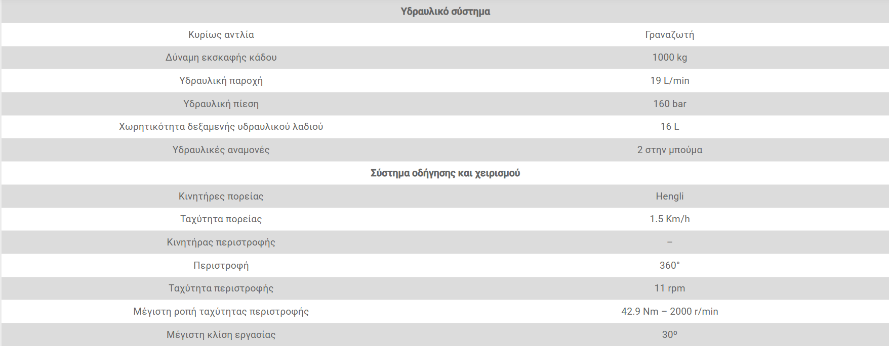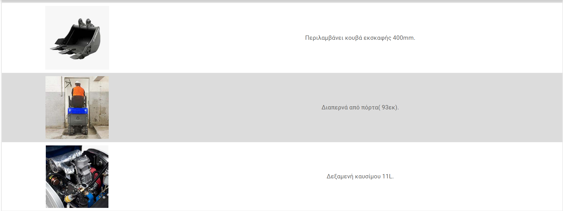- 1x κουβά εκσκαφέα με πλάτος εργασίας 400mm