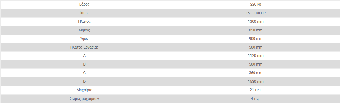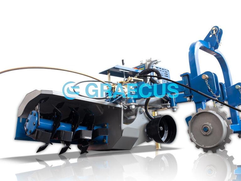 Το δενδροκομικό-αμπελουργικό φρεζάκι διαθέτει περιστρεφόμενο άξονα, μηχανική μετάδοση.