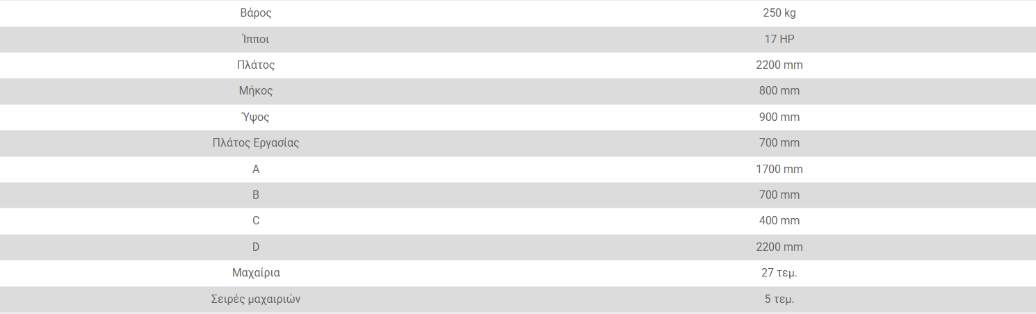 Το δενδροκομικό-αμπελουργικό φρεζάκι διαθέτει περιστρεφόμενο άξονα, μηχανική μετάδοση, κιβώτιο ταχυτήτων COMER Ιταλικό.