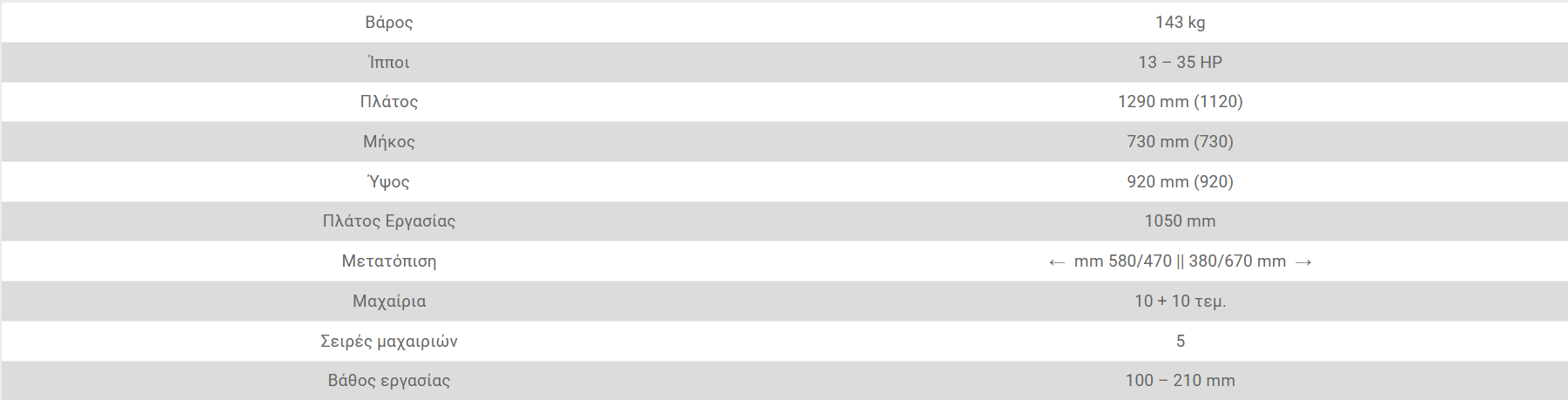 - Διεθνή ζεύξη τριών σημείων – Κατηγορίας Ι (ø 19.0-22.0mm).