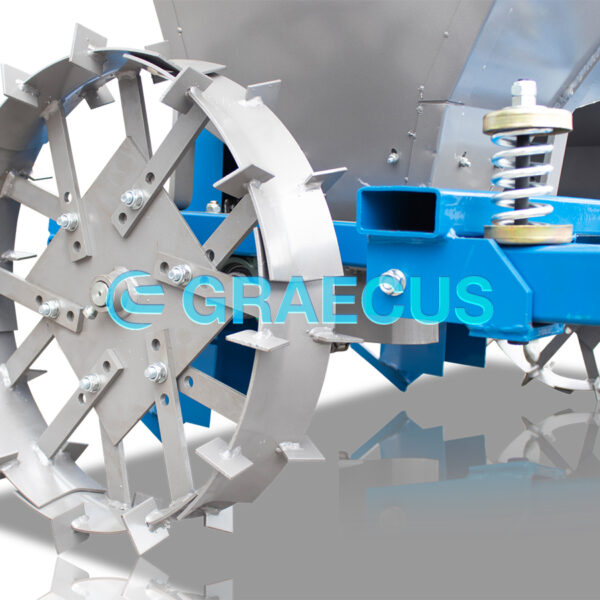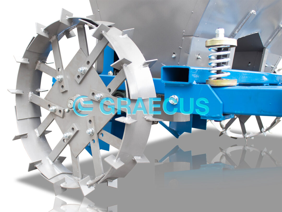 - Ρυθμιζόμενη διάμετρος στις μεταλλικές ρόδες επιτρέπει ποικιλία στην απόσταση φύτευσης σε μία σειρά(29 εκ, 32 εκ and 35 εκ).
