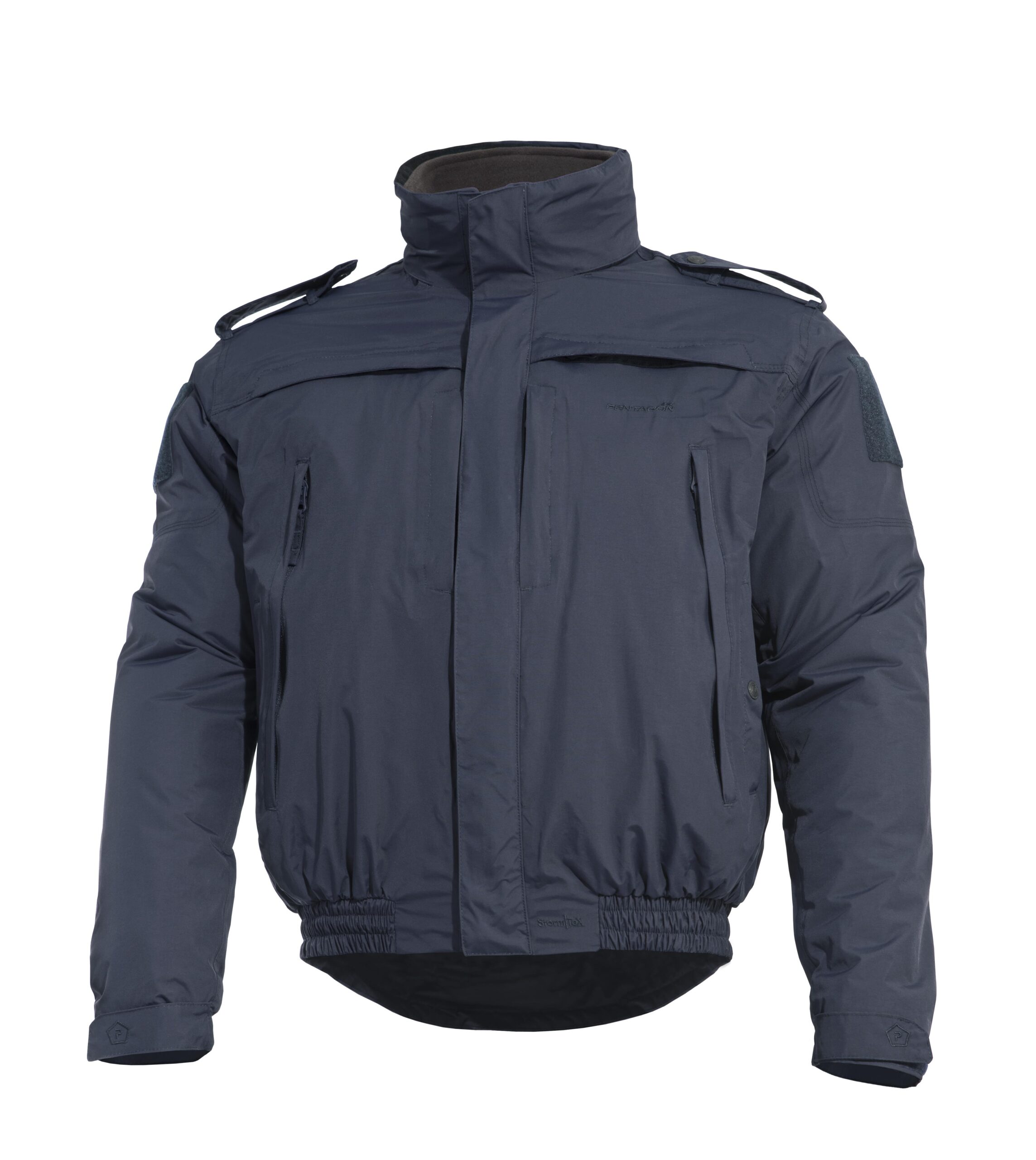 LNVR “RELOADED”, 3 in one Law Enforcement Jacket designed to serve mainly police or security personel on duty, giving protection against bad weather conditions. A wide range of utility pockets makes it a good and reliable product for professionals, laminated with a Storm|Tex™ membrane that offers 5000mm water-resistance and 5000mm breathability.SPECIFICATIONS 100% High tensile Nylon taslonLaminated with Storm|Tex 5000mm water-proof and 5000gr/m2/24h breathable membrane & taped seamsLow front length for easy access to gear worn on your belt carry systemLongback rise to keep you warmRemovable epauletsSuper fine double compounded fleece vest with 2 hand pockets and 2 Internal pockets attached to main jacket by zippers.